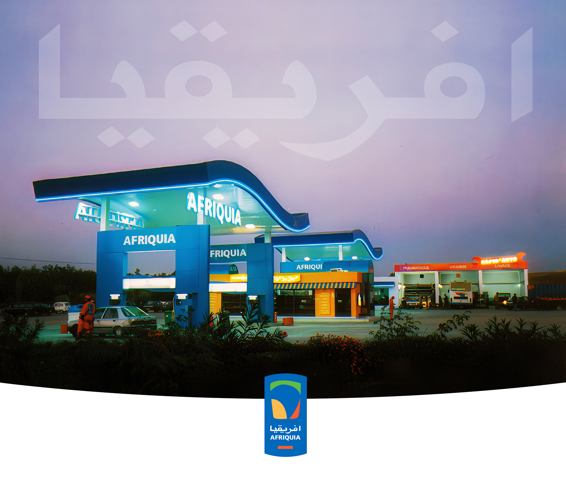 Création de l'identité visuelle des stations services Afriquia, premier réseau Marocain et d'Afriquia Gaz.