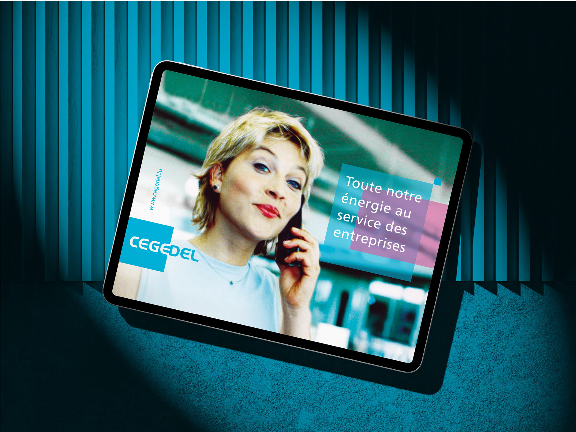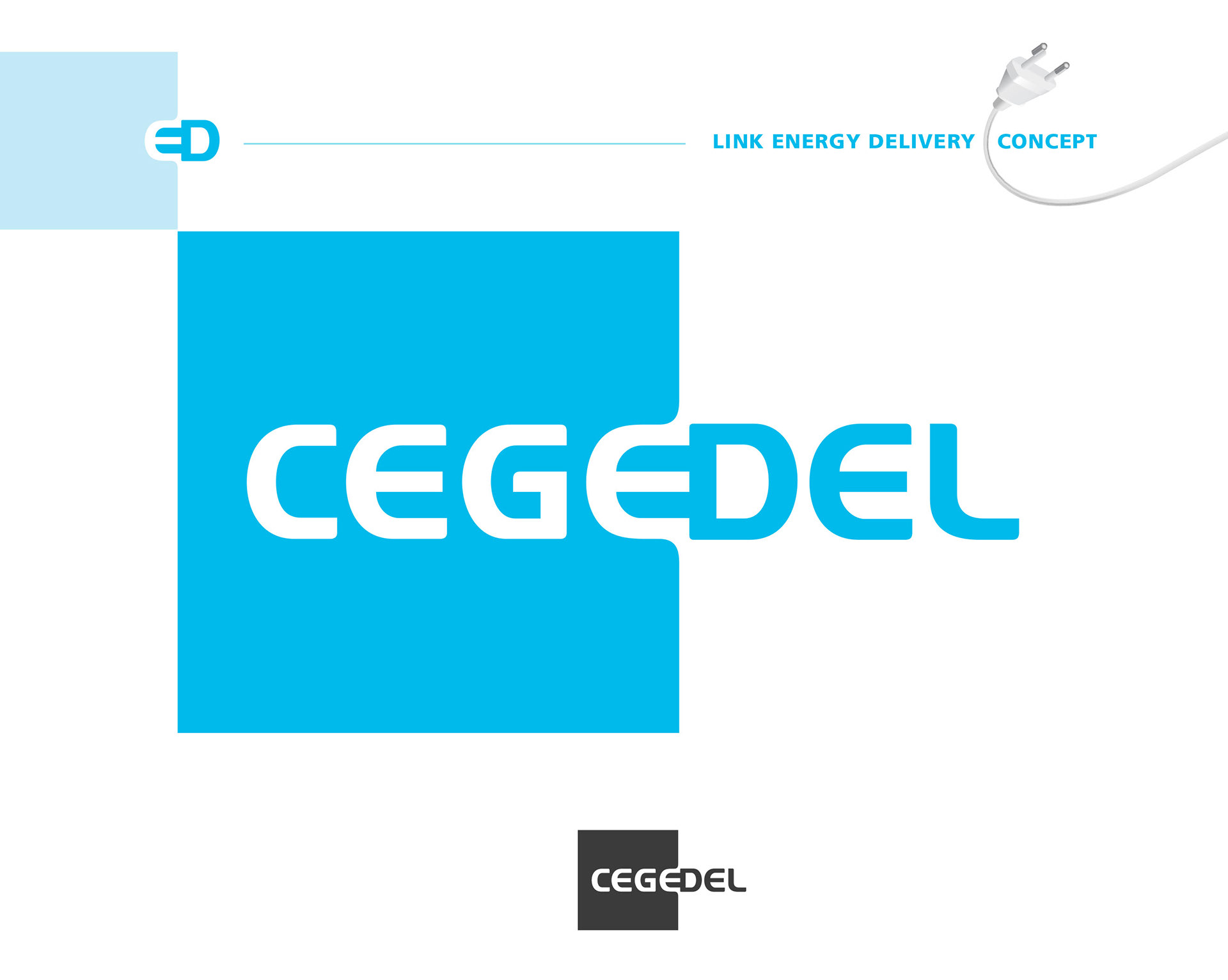 Le logotype de Cegedel conçu en 2002 contient un symbole subtilement intégré, qui se révèle en seconde lecture : une prise électrique. Ce choix graphique illustre parfaitement le lien entre Cegedel et sa clientèle, symbolisant l’accès à l’électricité et à l’énergie.