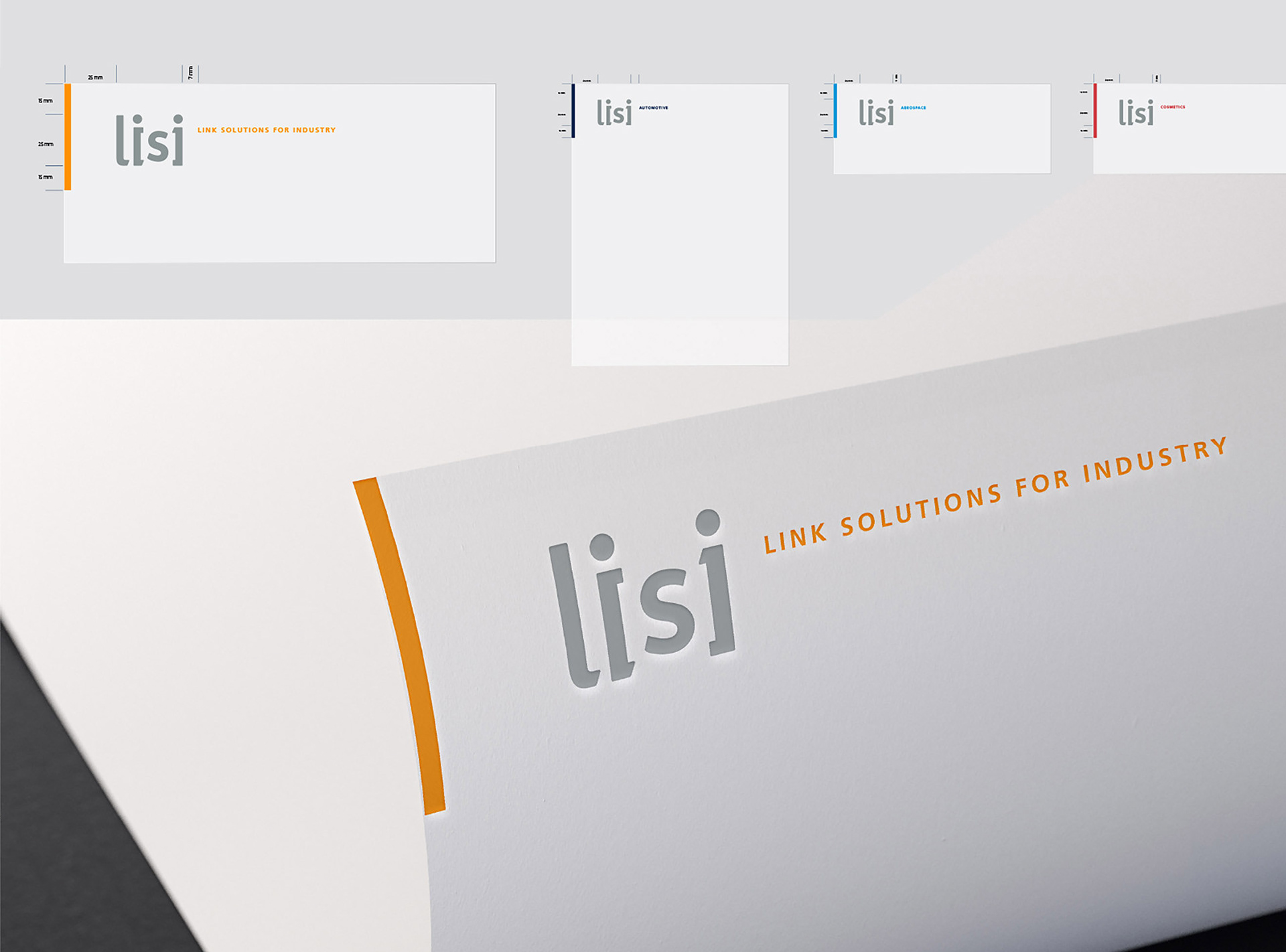 Création et direction artistique de l'identité visuelle du groupe LISI chez Minale Design Strategy, entre 2000 et 2002.