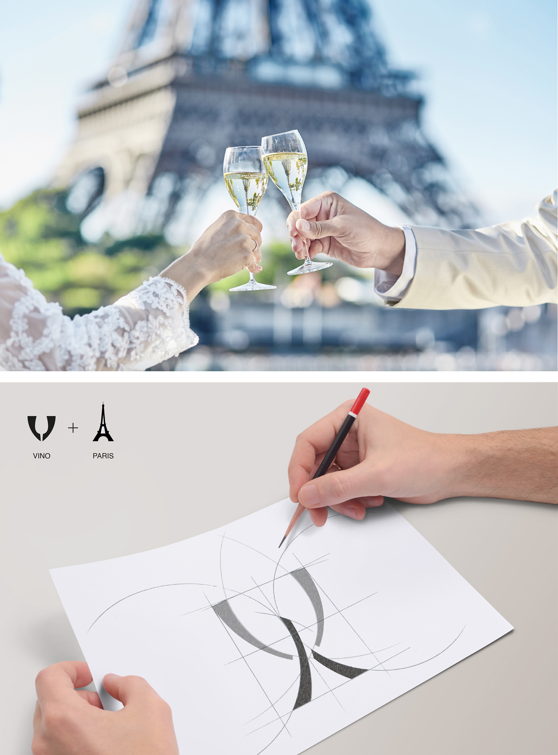 VINOPARIS incarne la rencontre entre l’élégance du vin et l’âme de Paris. Son identité visuelle naît naturellement de l’ADN de l'EVS (École des Vins et Spiritueux), fusionnant subtilement la silhouette d’un calice et celle de la tour Eiffel.
