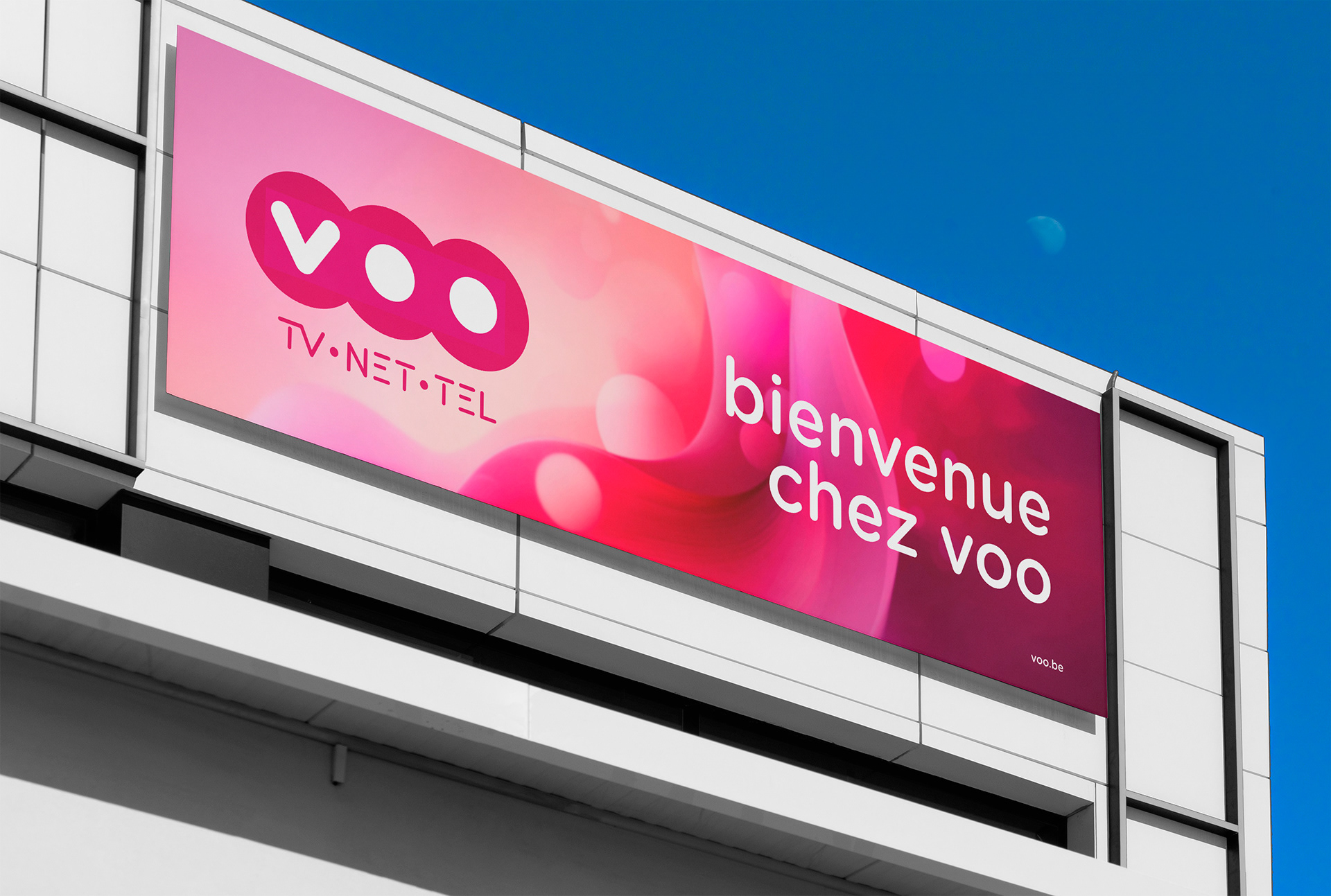 En 2006, nous avons conçu l’identité visuelle et créé le nom de l'opérateur belge VOO, spécialisé dans les services Internet, TV et Téléphone. L'objectif était de créer une marque à la fois simple, percutante et conviviale, dont le nom évoque phonétiquement une proximité avec ses utilisateurs.